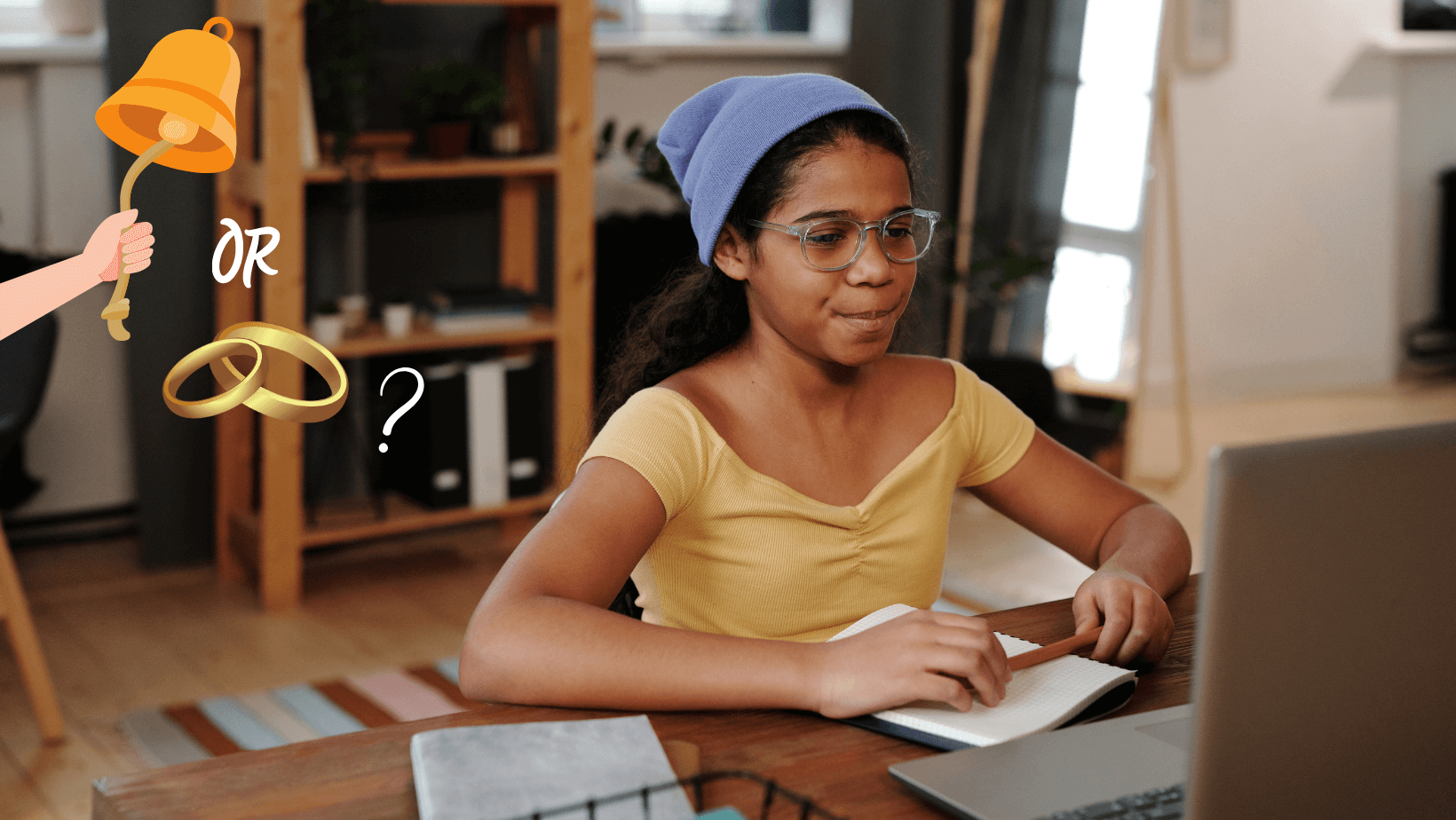 Homonyms RING OR RING, GIRLS IN FRONT OF THE COMPUTER